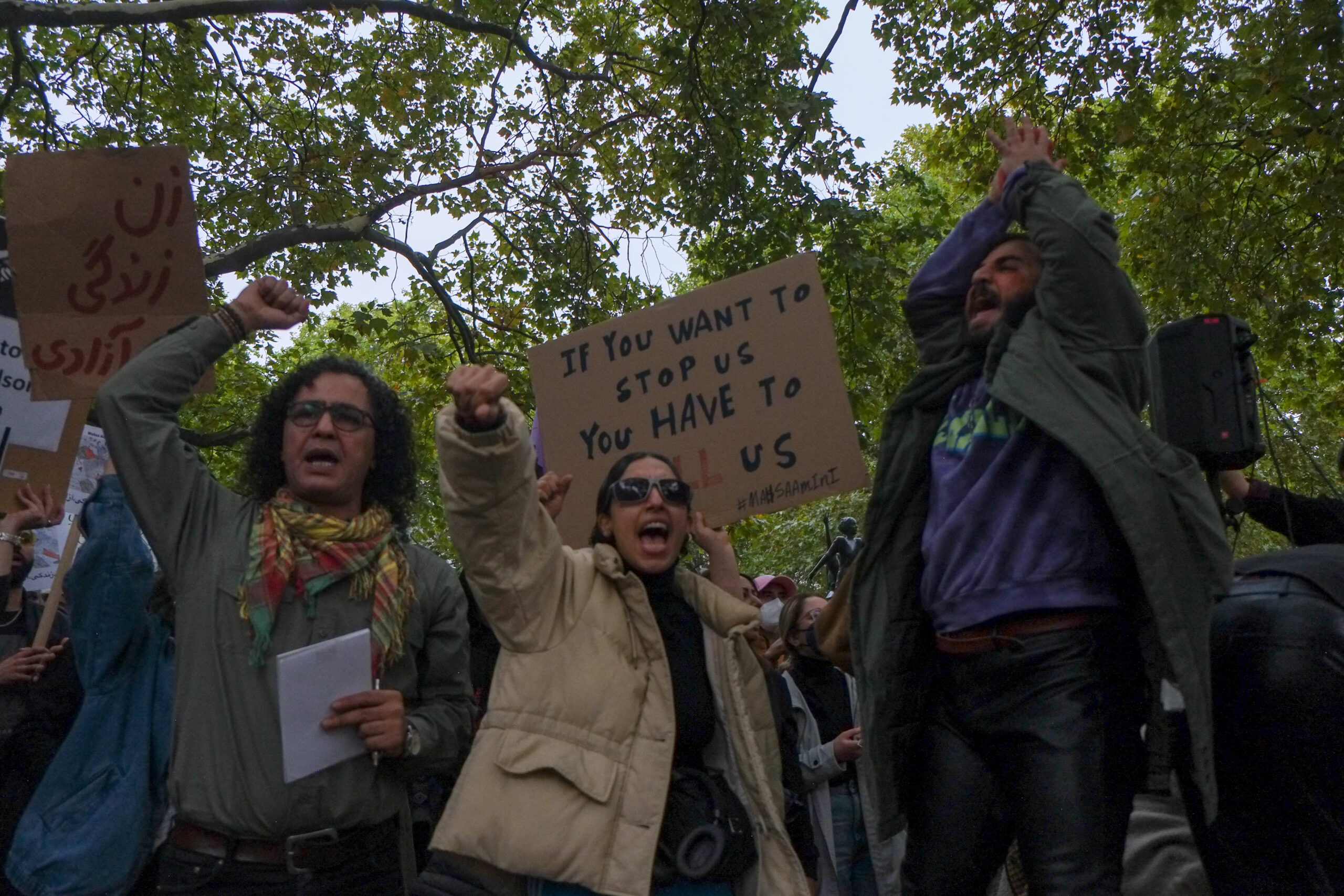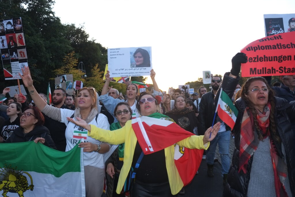 Ende Oktober hatte das «Woman* Life Freedom Kollektiv» zu der „Freedom Rally“ in Berlin aufgerufen. Dutzende Reisebusse aus ganz Europa fanden sich entlang der Straße zur Siegessäule wieder. Leinwände wurden wie beim Public Viewing während WM-Zeiten mit Liveübertragung von der mehr als hundert Meter entfernten Hauptbühne aufgebaut. Dort redete unter anderem der bekannte iranische Aktivist Hamed Esmaeilion, welcher die internationale Staatengemeinschaft aufforderte, Verhandlungen mit dem Iran zu stoppen und Botschafter auszuweisen. «Wir alle haben Träume, und unsere Träume werden nur Wirklichkeit, wenn der Iran von den Fesseln einer islamischen Republik befreit wird», sagte der Aktivist unter dem Jubel von mehr als 80.000 Menschen.