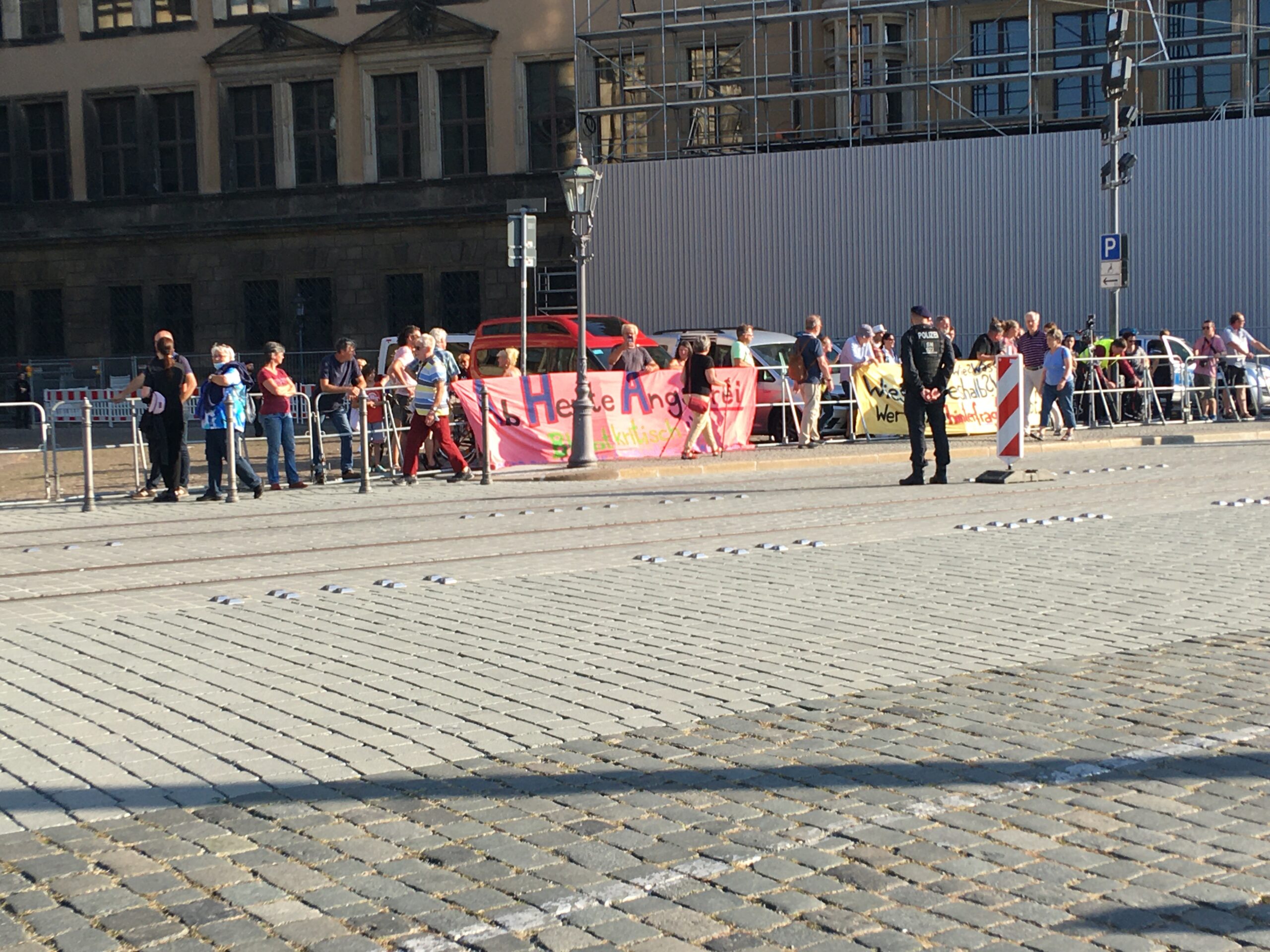 Es war ein wunderbarer Kontrast, der sich am Nachmittag des 9. Septembers in der Dresdner Altstadt ereignete. Auf dem Theaterplatz, vor der ruhmreichen Semperoper (Für die Fußballfans: Dat Jebäude aus der Radelberger Bier Werbung), sangen der Opernchor der Semperoper, der Dresdner Kreuzchor u.a. im Rahmen des Jugendchorfests. Ringsrum hunderte Polizist:innen und Securityleute in feinen Anzügen. Ganz am Rande, neben der katholischen Hofkirche eine Handvoll Demonstrant:innen. Dann plötzlich Polizeistaffel, der Chor singt Carmen und die Demonstrant:innen fangen an zu rufen: „Merkel muss weg, Merkel muss weg“. Ob man in den Reihen der schreienden weiß, dass Merkels Amtszeit in nichtmal drei Wochen endet, bleibt dabei offen. Und da kommen sie, die Wagen der Bundeskanzlerin, mit Blaulicht und getönten Scheiben. Die Nazis schreien, der Chor singt, die Polizisten schweigen. All das, man hätte es kaum besser inszenieren können. Der Chor übertönt die Gesänge…