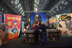 Mit einem überschaubaren fünfköpfigen Team beginnt unsere Reise nach Frankfurt mit einer Bahnfahrt von Essen um 7:30 Uhr. Am Messegelände kommen wir bereits am Freitagmittag an und verschaffen uns erstmal einen Überblick. Das Gelände ist riesig und mit 5–6 Gebäuden und ihren jeweiligen Ebenen ist es leicht, sich zu verlaufen. Wir besuchen die Messe als Presseteam und haben so Zugang zum Pressezentrum. Nach einem kurzen Stopp dort und der Garderobe besuchen wir die Halle 4.1. Hier werden die internationalen Verlage, mit Ausnahme der USA und Großbritannien, ausgestellt. Wir bewundern die individuellen Stände, die oftmals sehr repräsentativ für die Nationen gestaltet wurden. Es gibt Bücher in Sprachen aller Art. Danach geht es weiter zur Halle 6.1 gegenüber. Hier sind bunte Stände, die gezielt Kinderbücher verlegen und andere nur für Comics und Graphic Novels.