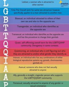 LGBTQ+ ist eine Kurzfassung der links gezeigten Beschreibungen verschiedener sexueller Orientierungen. Lange war es auch irgendwie ein Tabuthema darüber zu sprechen, dass man nicht „straight“, heterosexuell, sondern beispielsweise „gay“, homosexuell ist. Auch im 21. Jahrhundert ist dieses Thema dennoch, gerade in der katholischen Kirche, ein großes Tabu. Umso mehr erfreut man sich, dass die Christ:innen und allgemein die Menschheit, es fast schon als normal ansehen.