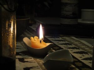 - deinen Lichtschalter & Kerzen (möglichst ohne Erdöl, lieber: Kerzen aus Bienenwachs, Sojawachs oder Raps)